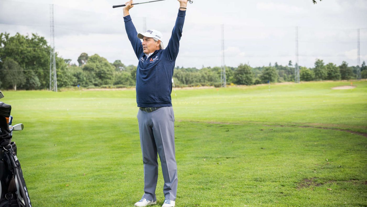 Optimal ist es nicht. Deswegen spiele ich auch nicht oft und nehme mir meine Pausen. Dass ich nicht der Typ bin, der stundenlang auf der Range übt, ist ja bekannt. Ich spiele regelmäßig meine Runden, wenn ich zu Hause bin. Dienstag und Donnerstag sind mit Kumpels gesetzt. Geht ein Tag nicht, holen wir das am Samstag immer nach. Das macht Laune. Zuletzt habe ich eine 58 gespielt, das war recht teuer für meine Jungs. An den anderen Tagen, wo ich nicht auf dem Platz bin, nehme ich verschiedene Schläger, geh durchs Haus und schwinge einfach nebenbei. Ich bin ja auch keine 35 mehr. Wenn ich sehe und höre, was die Jungen so alles veranstalten – mein Gott. Die stehen von 6 Uhr morgens bis abends auf der Range.