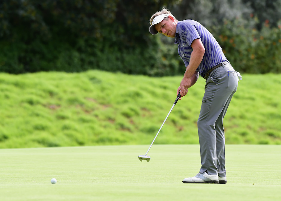 Viele Freizeitgolfer beschleunigen viel zu stark durch den Ball, was die Bewegung unruhig und sogar geyippt machen kann. Luke Donald musste sich auf das Momentum verlassen, dass er allein durch den Rückschwung erzeugte.