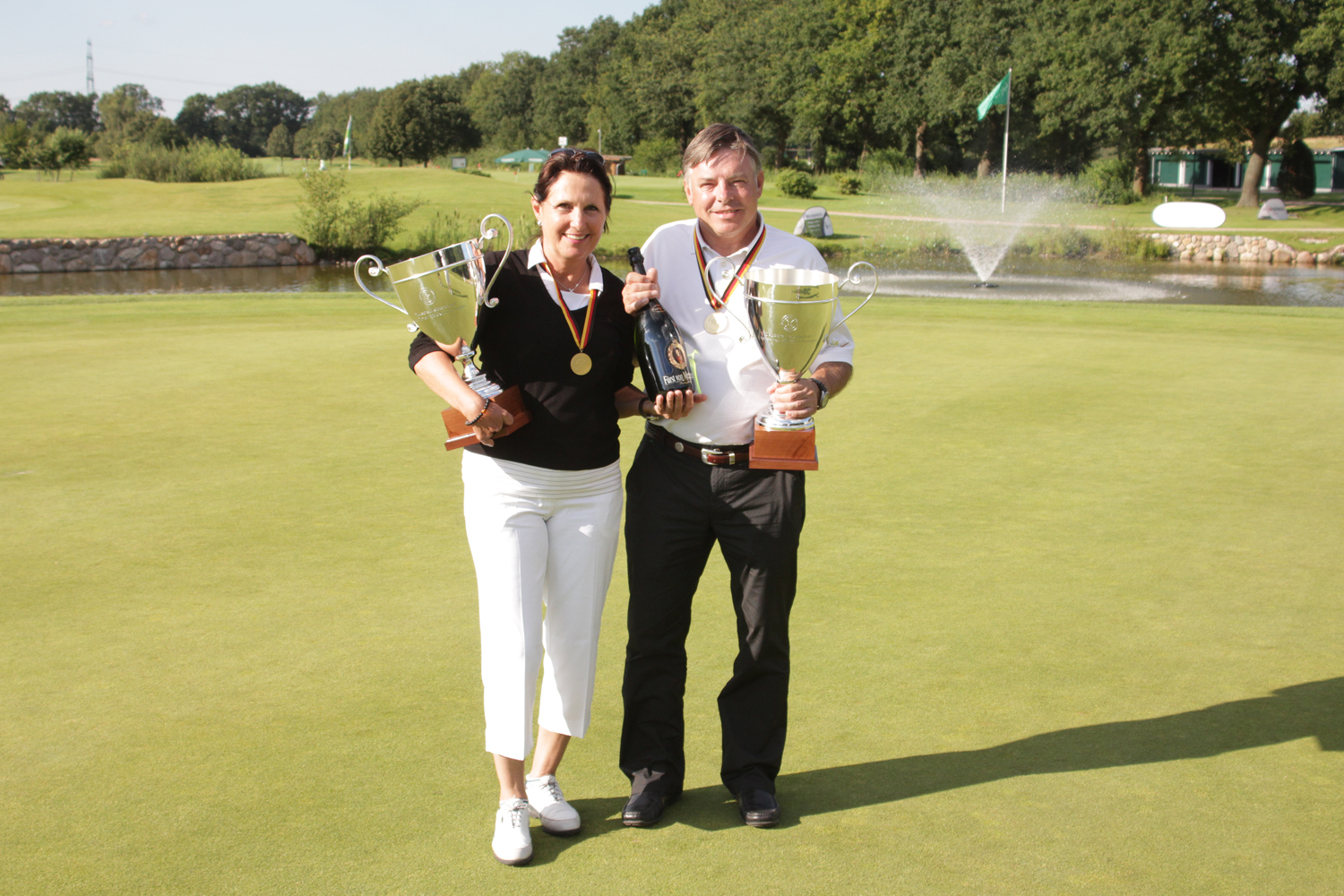 Der Wettkampf war schon prickelnd, sagt der erfolgreiche Titelverteidiger Rainer Birkenstock. Er war auf einem geteilten zweiten Platz und mit fünf Schlägen Rückstand auf den Führenden in die entscheidende Runde gestartet und konnte diese mit 79 Schlägen beenden. Damit überholte der Wiesbadener den dreimaligen Deutschen Meister Reinhard Friske vom gastgebenden G&CC Hamburg-Treudelberg, der nach der ersten Runde führte und am zweiten Tag seinen Vorsprung nach Bahn 7 zwischenzeitlich auf sieben Schläge ausbaute. Ich habe richtig gut gespielt, aber dann habe ich mich rausbringen lassen und zwei Doppelbogeys gemacht, sagt er. Ich bin natürlich enttäuscht. Die Leute hier im Club hätten mich bestimmt gerne als Sieger gesehen, und ich mich natürlich auch. Aber so ist das Leben.