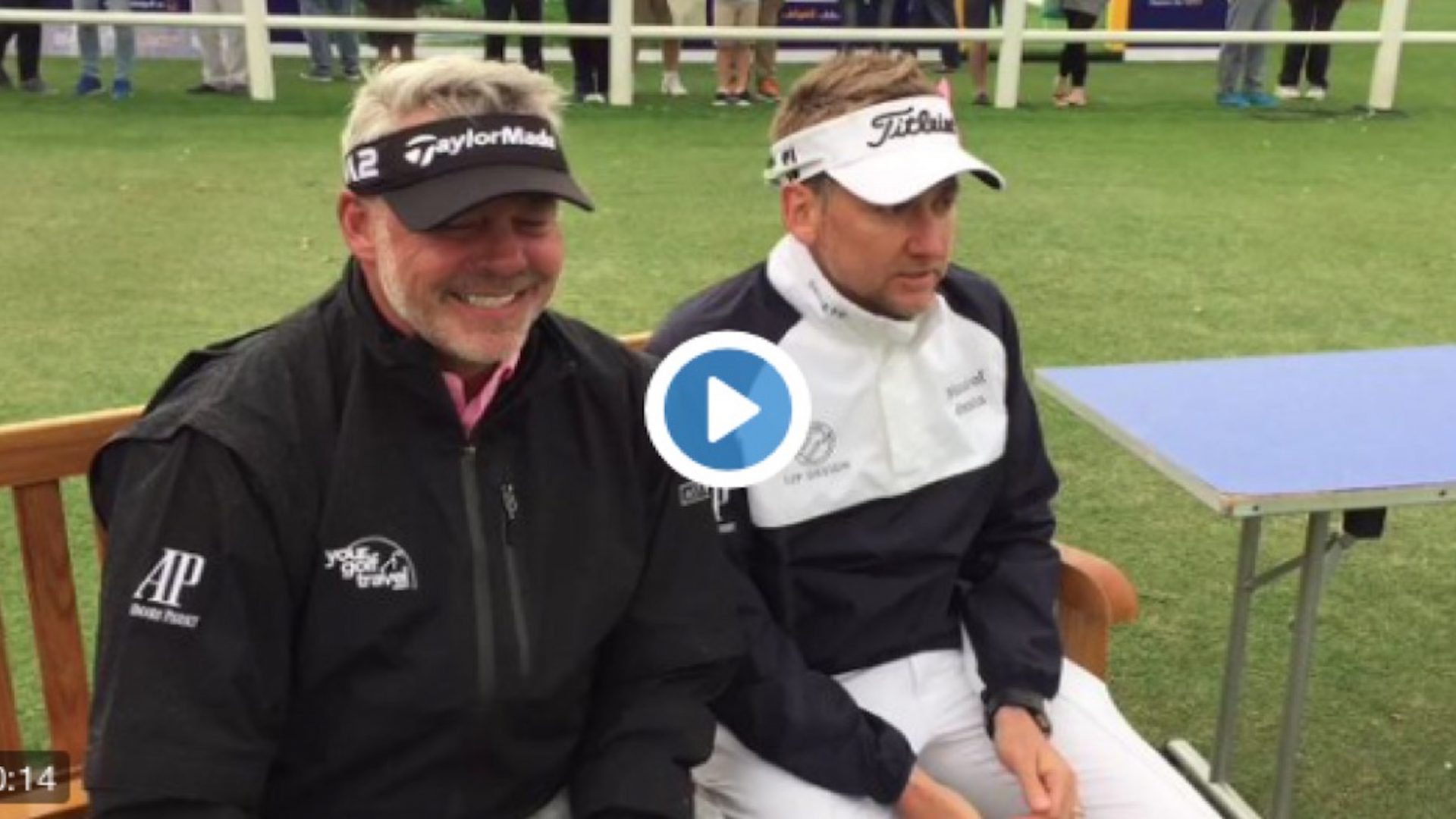Die zweite Runde der Dubai Desert Classic wurde aufgrund der schlechten Wetterverhältnisse abgebrochen. Weiter geht es erst morgen früh. Derweil sorgt diese Entscheidung der European Tour nicht unbedingt bei allen Spielern für Begeisterung. Martin Kaymer, Ian Poulter und andere Spieler machten daraus auch keinen Hehl und verkündeten ihre Meinung auf diversen Social Media Plattformen. Ganz besonders hat uns dieses Video von Ian Poulter und Darren Clarke gefallen.