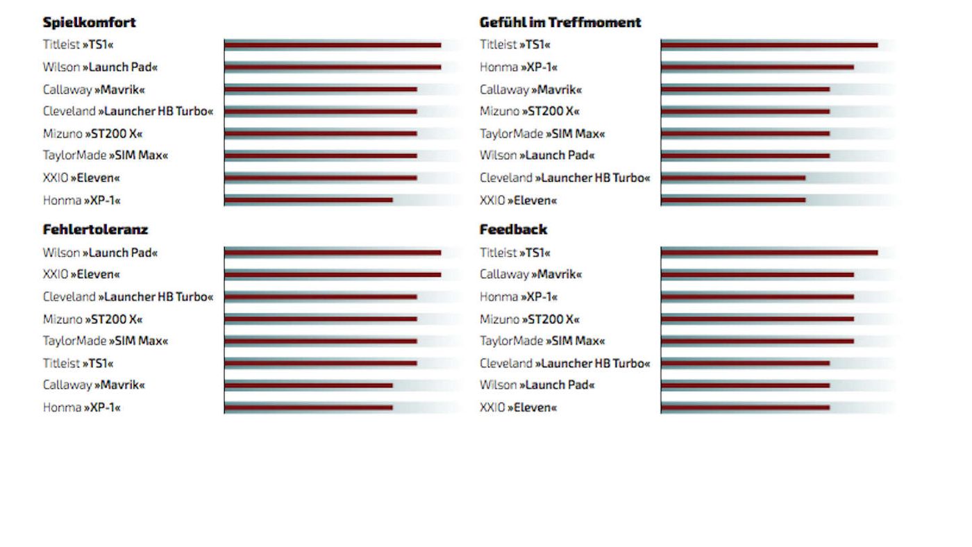 Bei Gefühl und Feedback liegt bei mir der »TS1« von Titleist ganz klar vorne. Im Handling haben mir der Wilson »Launch Pad« und der XXIO »Eleven« am besten gefallen. Und welcher Driver käme in mein Bag? Da fällt meine Wahl auf den Callaway »Mavrik«. Das mag aber auch daran liegen, dass ich den »Epic« seit zwei Jahren spiele und mich damit wohl fühle. Ein Geheimtipp ist sicherlich auch der »ST200 X« von Mizuno.