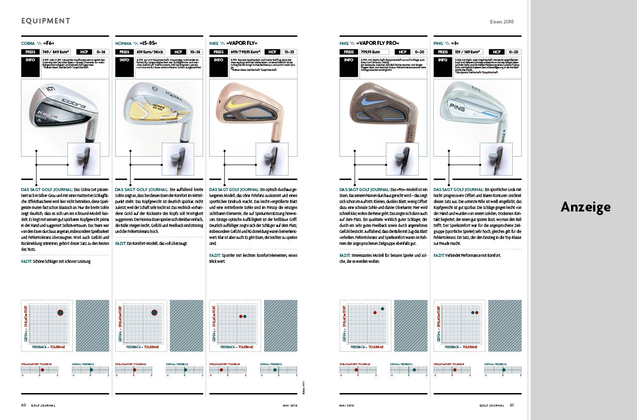 Toleranz Klar fehlerverzeihende Eigenschaften sind schon immer im Fokus der Neuentwicklung bei den Eisen. Das haben Sie bestimmt schon öfters gelesen – nicht nur in GJ, sondern sicherlich auch in den Produktbeschreibungen der Hersteller. Die neigen jedoch gerne mal zur Übertreibung und stellen die eigenen Schläger so dar, als ob ein »Miss-Hit« quasi ohne jegliche Auswirkung bleibt. Dem ist selbstredend nicht so, doch, dass muss konstatiert werden, die Fehlschläge haben schon längst nicht mehr jene gravierenden Auswirkungen, wie es früher der Fall war. Denn in den vergangenen Jahren ist hier viel Gutes erreicht worden. Um so diffiziler ist es, heutzutage tatsächlich weitere Verbesserungen zu erzielen. Doch es gelingt, wenn auch nicht mehr in den großen Schritten von einst.
