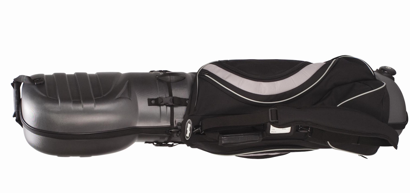 Eine weitere Option sind so genannte Hybrid- oder 2-in-1-Versionen, die Travel-Cover und Tasche kombinieren, wie beispielsweise das »Hybrid TC« von Bag Boy. Dabei handelt es sich um eine unkonventionelle, aber sicherlich intelligente Designvariante, bei der ein »normales« Bag, das zusätzlich mit Rollen ausgestattet ist, mit einer Haube im Hard-Cover-Stil kombiniert wird. Zum besseren Schutz der Schlägerköpfe ist diese innen noch zusätzlich gepolstert. Allerdings bleibt zum Verstauen während des Flugs nur Platz fürs Notwendigste. Schuhe oder Regenanzug müssen daher wohl im Koffer Platz finden.