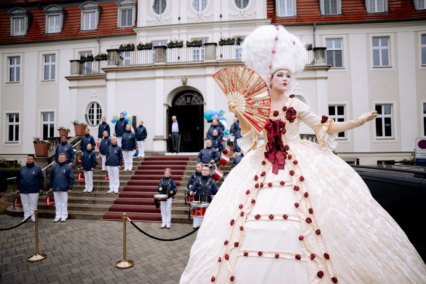 Schon beim Betreten der geschichtsträchtigen Hallen war spürbar: Dieses Event wird etwas Besonderes. Ab 15 Uhr empfing das Schloss Fleesensee seine Gäste zur großen Jubiläumsfeier – musikalisch eingeleitet vom Fanfarenzug Neustrelitz auf der Schlosstreppe und stilvoller DJ-Musik in der Bar 1842.