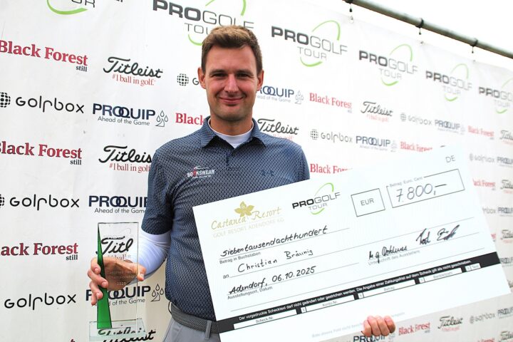 Pünktlich zum Saisonende drehte Christian Bräunig richtig auf: Nach einer soliden 70 (-2) am völlig verregneten ersten Spieltag legte er eine sensationelle 66 (-6) am Sonntag nach und behielt auch am Finalmontag die Nerven und notierte eine 67 (-5). Die Bilanz von 13 unter Par (auch dank der zwei Eagles auf den Bahnen 6 und 10) reichte für den ersten Saisonsieg, einen angenehmen Vorsprung von drei Schlägen, den Siegercheck von 7.800 Euro und entsprechende 7.800 Punkten auf der Order of Merit. Ein zukunftsweisendes Ergebnis für den Spieler des GC Mannheim-Viernheim, der zwischenzeitlich so sehr mit seinem Spiel haderte, dass er sogar in Erwägung zog, seine aktive Karriere vorzeitig zu beenden.