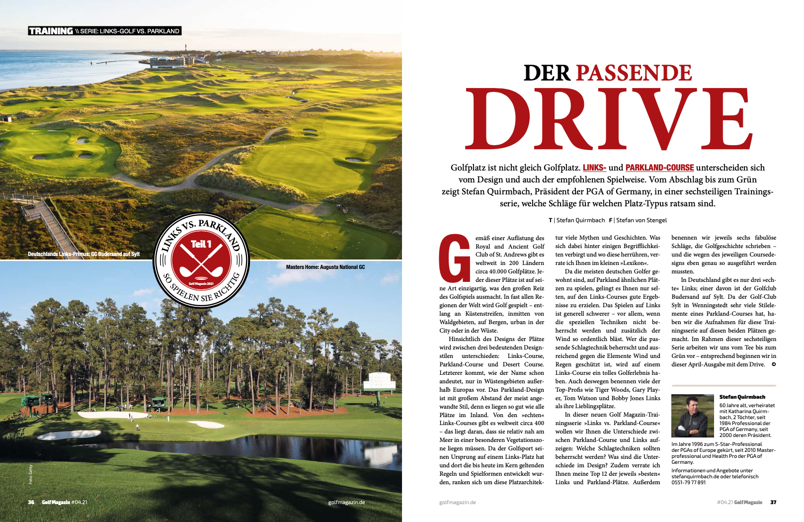 TRAINING: Auf die Plätze fertig los – Die Tipps von Smart Golf bereiten Euch perfekt auf die neue Saison vor. Und in der neuen Trainingsserie “Links vs. Parkland-Course“ zeigt Stefan Quirmbach, welche Schlagtechniken beherrscht werden sollten – angefangen beim Drive.