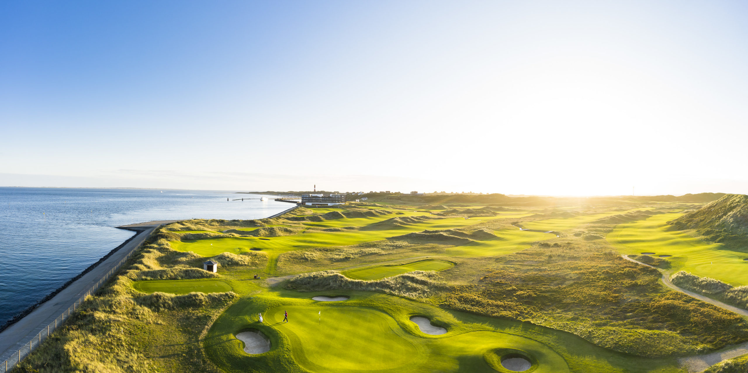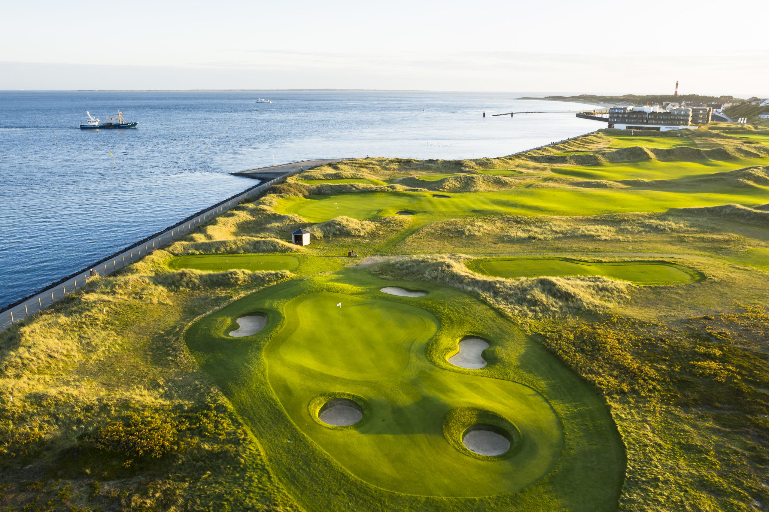 Auch für Golfer ist das BUDERSAND einmalig: Der Golfclub Budersand Sylt, als typischer Links Course, ist geprägt von der kargen Sylter Dünenlandschaft und den üppigen Heideflächen, welche sich mit wogendem Strandhafer abwechseln. Die 18-Löcher-Anlage ist der einzig echte Links Course in Deutschland und das heißt: Hier Golf spielen bedeutet immer auch, mit dem Wetter spielen. Aber auch neue Erfahrungen sammeln: Topfbunker zu umgehen oder darin versinken; wie immens weit der Ball auf dem harten Fairway rollt, den knackigen Ballkontakt eines gut getroffenen Eisens spüren, der innerliche Jubel, wenn der Ball auf dem Grün langsam Richtung Fahne rollt. »True Links« ist Golf, das fordert und Spaß macht. Das hoch oben über dem Golfplatz angelegte Übungsgrün gibt dem Golfer einen ersten Eindruck auf die zu erwartenden Spielbahnen.