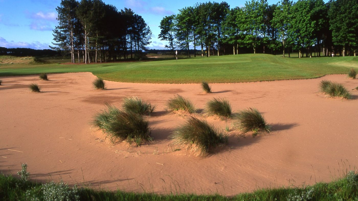 Auch diese Golfanlage, eingebettet in eine imposante Kulisse und erst seit zwei Jahren für jedermann zugänglich, verspricht eine eher atypische Runde für die Region: Die ersten elf Löcher von Fidra Links ziehen sich wunderschön durch eine Waldlandschaft nahe der Küste, man riecht das Meer, hört die Wellen rauschen – und ist dank Pinien und Dünen trotzdem vor dem rauen Wind geschützt, der hier ständig weht. Echtes Links-Golf gibt’s erst ab Bahn zwölf. Insgesamt aber erleichtern breite, überwiegend geradeaus verlaufende Bahnen einen guten Score, und man fast könnte von einem angenehm zu spielenden Kurs sprechen, wären da nicht die vielen tückischen Fairway-Bunker und die tiefen Topfbunker, welche die Grüns schützen. Wer nicht in der Lage ist, die Putt-Flächen mit einem präzisen Schlag zu erreichen, für den wird der Platz viel schwieriger, als er auf den ersten Blick aussieht.