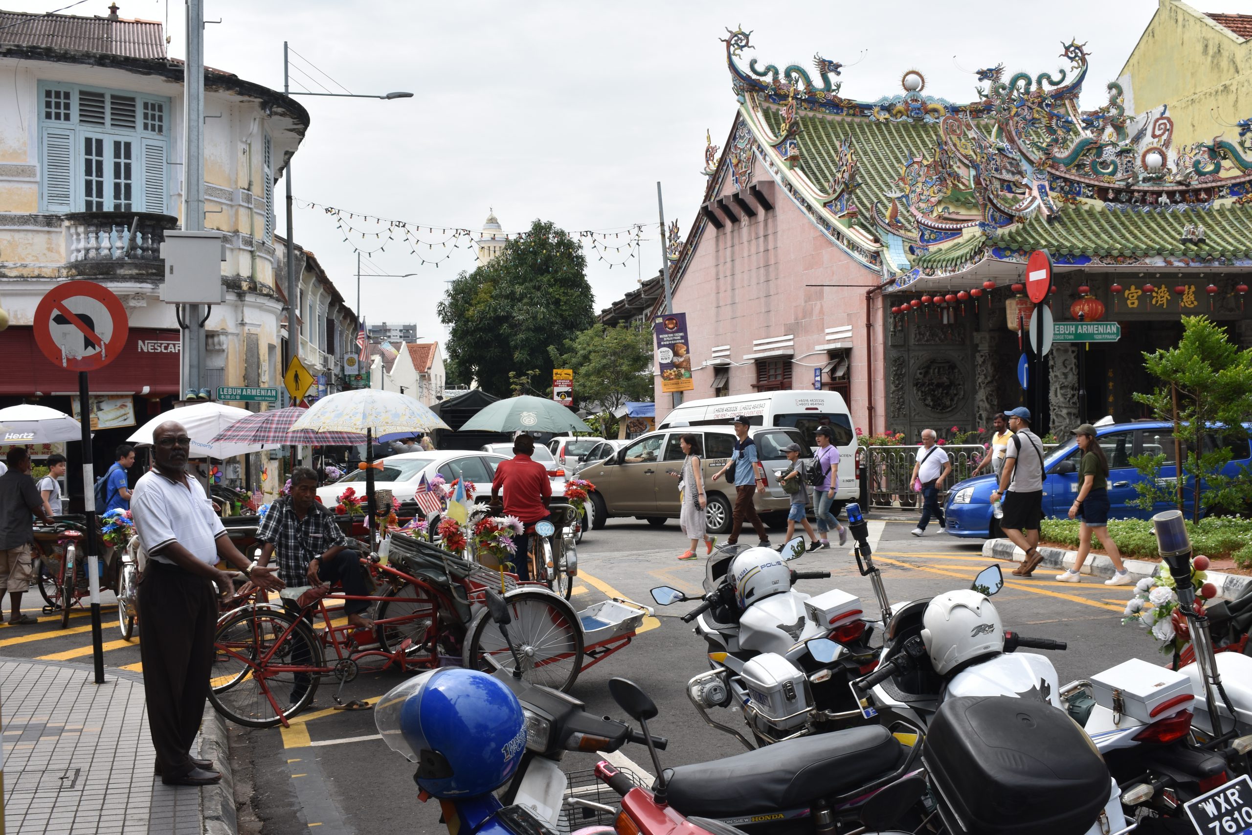 Und selbstverständlich auch George Town, die expandierende Hauptstadt der Insel, in der die Chinesen die Hauptbevölkerungsgruppe stellen. Sie verfügt außerdem die über die flächenmäßig größte, noch komplett intakte Altstadt in ganz Südostasien. Wohl nirgendwo anders können die jahrhundertealten Strukturen des Zusammenlebens verschiedener Ethnien und Religionen besser erlebt werden als hier. Zwischen tausenden von Läden mit den traditionell darüber befindlichen Wohnungen laden buddhistische und hinduistische Tempel ebenso zum Besuch ein wie Moscheen und Kirchen.