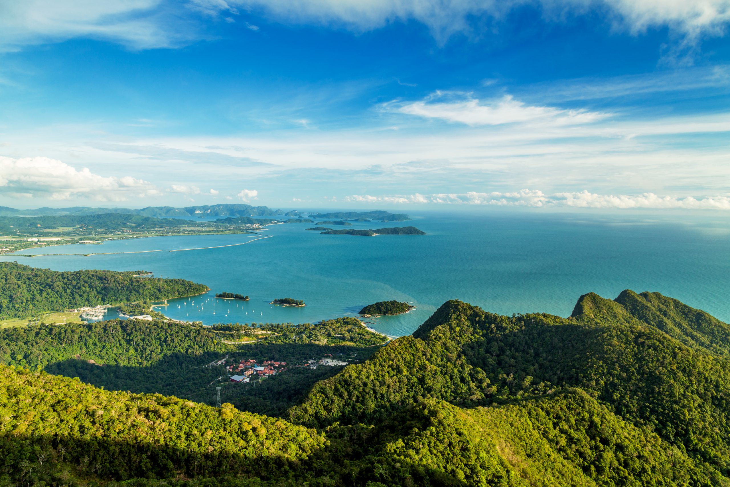 Panoramablick: Ein Muss auf Langkawi ist die Fahrt mit der Seilbahn auf den Mount Mat Chincang. Auf rund 700 Metern Höhe wartet hier eine spektakuläre Aussicht auf den Archipel und die Südspitze Thailands