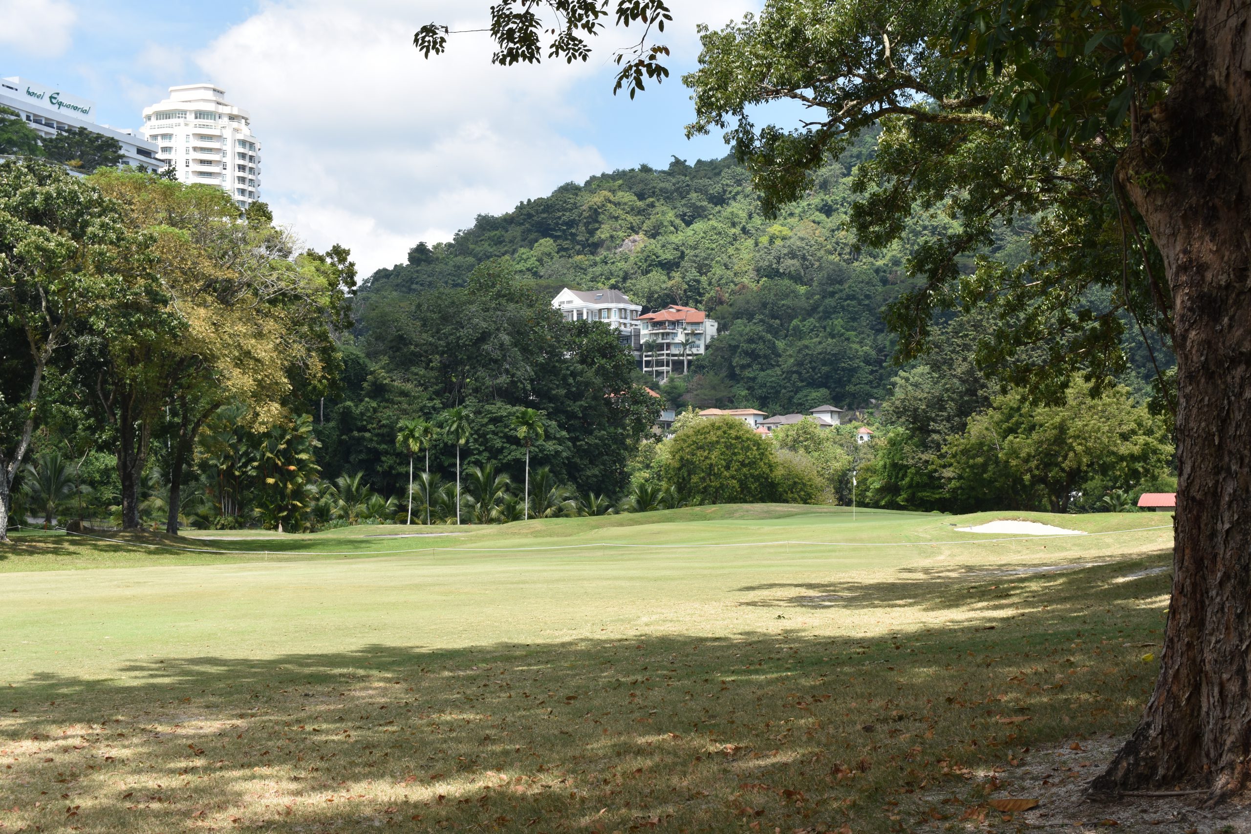 Unvergesslich bleibt in jedem Fall Loch 10, das Signature-Hole. Auf diesem soll unten im Tal ein kleines, nur auf den ersten Blick enges Fairway getroffen werden. So hat man dann eine gute Lage und einen noch besseren Winkel über das Wasser auf das perfekt bewachte Grün. Dazu gesellt sich ein Blick auf manch üppige, prunkvolle Villa der betuchten Einheimischen. Die ziehen sich nämlich an den dicht bewaldeten Ausläufern des Penang Hill entlang, während sich im Hintergrund die Wohntürme aufbäumen und langsam die Sicht auf die Brücke zum Festland verdecken.