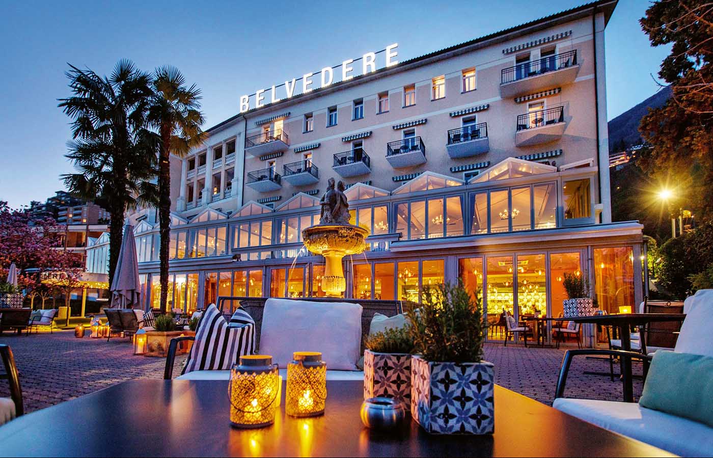 Der im 15. Jahrhundert erbaute Wohnsitz wird seit Ende des 19. Jahrhunderts als Hotel genutzt. Im Zuge von Erweiterungen hat man das Hotel immer wieder modernisiert, sodass es heute gehobenen Ansprüchen gerecht wird. Das 4-Sterne-Superior Haus befindet sich in Locarno an einem Berghang unterhalb der Wallfahrtskirche Madonna del Sasso und von jedem Zimmer hat man einen herrlichen Blick auf den Lago Maggiore. Die geräumigen Zimmer und Suiten sind reduziert, aber dennoch geschmackvoll eingerichtet. Im Oasi-Spa kann man wohltuende Behandlungen genießen, etwas für die Fitness tun, im Pool ein paar entspannte Runden drehen oder verschiedene Saunen besuchen. Im Restaurant serviert man in trendigem Ambiente kosmopolitische, mit regionalen Produkten verfeinerte Küche, die in der Region einen guten Ruf hat und auch Nicht-Hotelgäste ins Belvedere lockt.