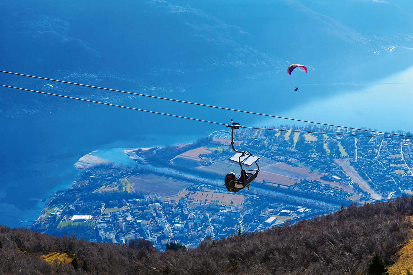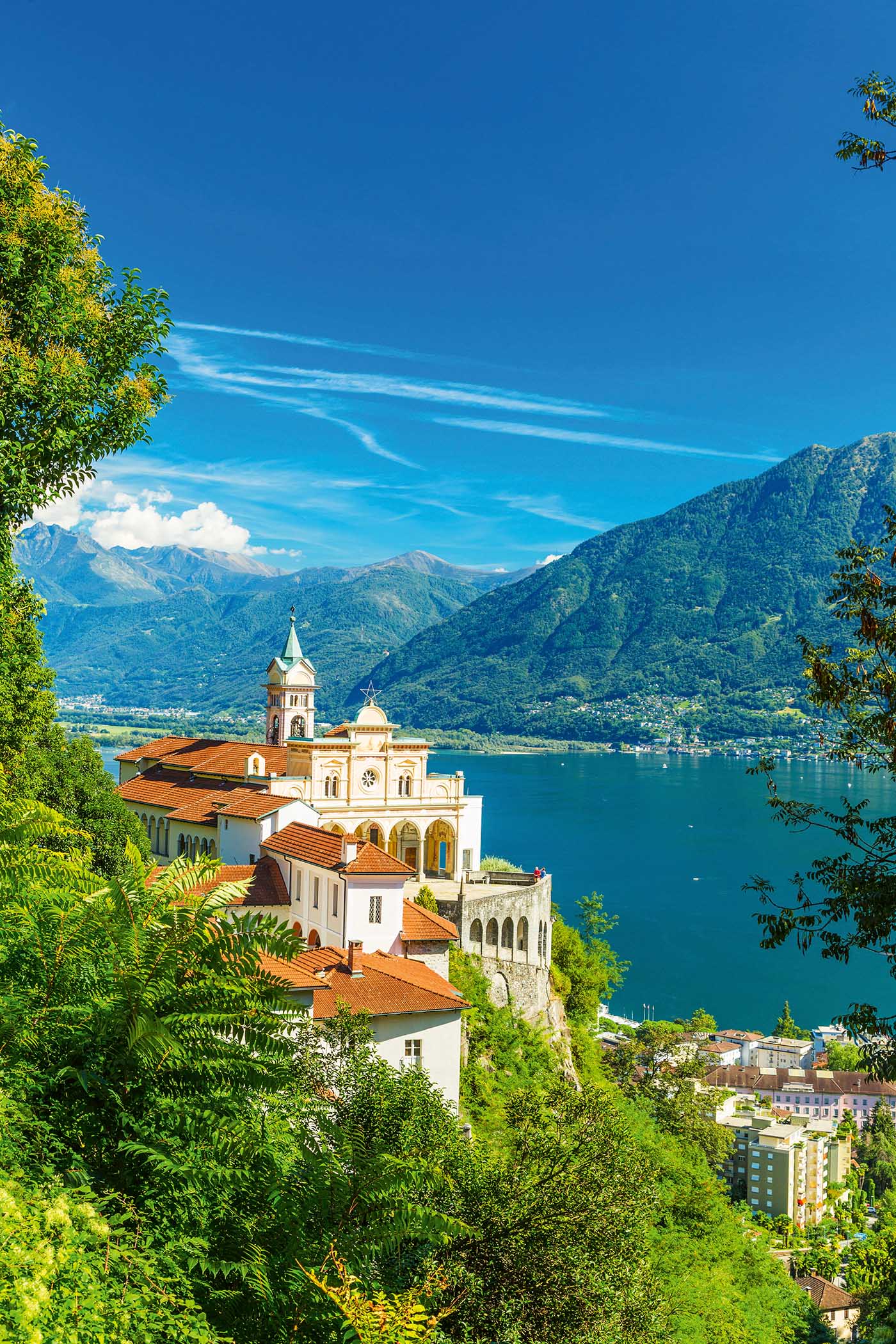 Als Standort für Fahrten zu den jeweils 10 Minuten entfernten Golf Plätzen in der Schweiz empfiehlt sich das Hotel Belvedere in Locarno. Nicht nur, weil man dort in einem Traditionshaus mit modernem Ambiente schön untergebracht ist und gut essen kann, sondern auch von der Standseilbahnstation Muralto Belvedere schnell an der Talstation der Cardada-Seilbahn ist. Diese bringt einen mit anschließendem Sessellift auf die 1.671 Meter hohe Cimetta, von der man einen beeindruckenden Blick auf den Lago Maggiore sowie die Westschweizer Alpen mit Monte Rosa und Duffourspitze hat. Zwischen Hotel und Cardada-Talstation lohnt sich zudem ein Blick in die Wallfahrtskirche Madonna del Sasso, einem wichtigen Ziel von Pilgerfahrten mit einem steil bergauf führenden Kreuzweg.