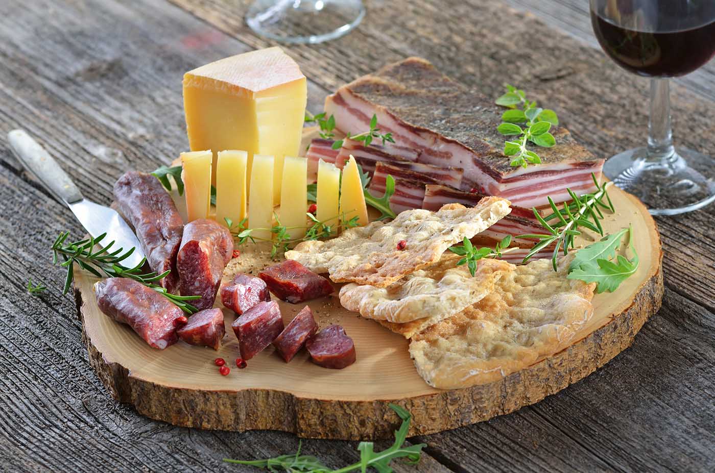 Exemplarisch kommen hier ein paar herausragende Betriebe: die Feinkäserei Capriz bei Brixen mit ihrem üppigen Angebot von Kuhmilch- und Ziegenmilchkäse, die Psairer Bio Bergkäserei in St. Martin oder der Ziegenkäse vom Untereggerhof in Vals, auf dem 160 Deutsche Weiße Edelziegen wie in einem Club Med leben und nur bestes Heu und Klee zu fressen bekommen; neben Käse und Milch stellt Inhaber Manuel Zingerle aus der vitamin- und mineralienreiche Molke auch Kosmetik her. Bio-Honig gibt es etwa von Paul Rinner, dem »Herren der Bienen«, Kräuter von der Ananasminze bis zum Zitronenthymian können Reisende vom Pflegerhof in Seis erwerben. Den Grand Cru vom Bergapfelsaft stellt die Firma Kohl her, und die Wagyu-Rinder züchtet Stefan Rottensteiner im Oberweidacherhof. Erstklassiges Brot, Speck und Obstbrände gibt es ohnehin überall, und selbst Kaffee (Kuntrawant) und Pasta (Felicetti) machen sie hier.
