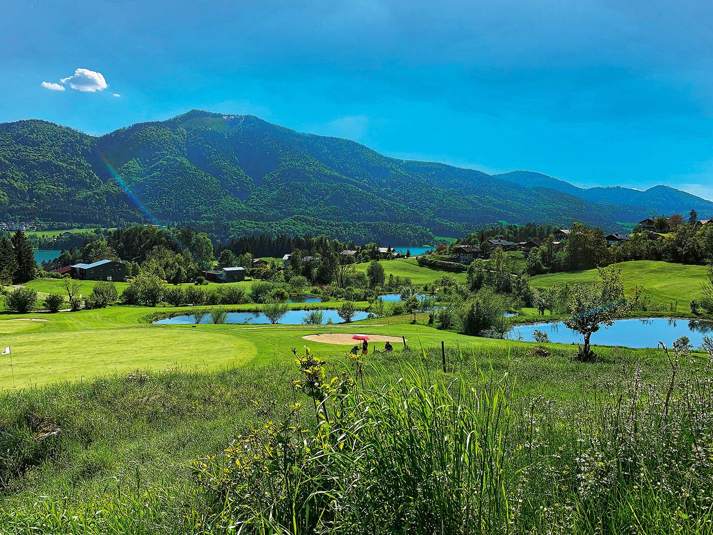 Da ist beispielsweise der Golfclub Am Mondsee: Zwischen dem glitzernden See und dem grandiosen Bergpanorama, fällt es manchmal schwer, sich auf den Abschlag zu konzentrieren, denn der Blick schweift ganz automatisch immer wieder in die herrliche Umgebung ab.