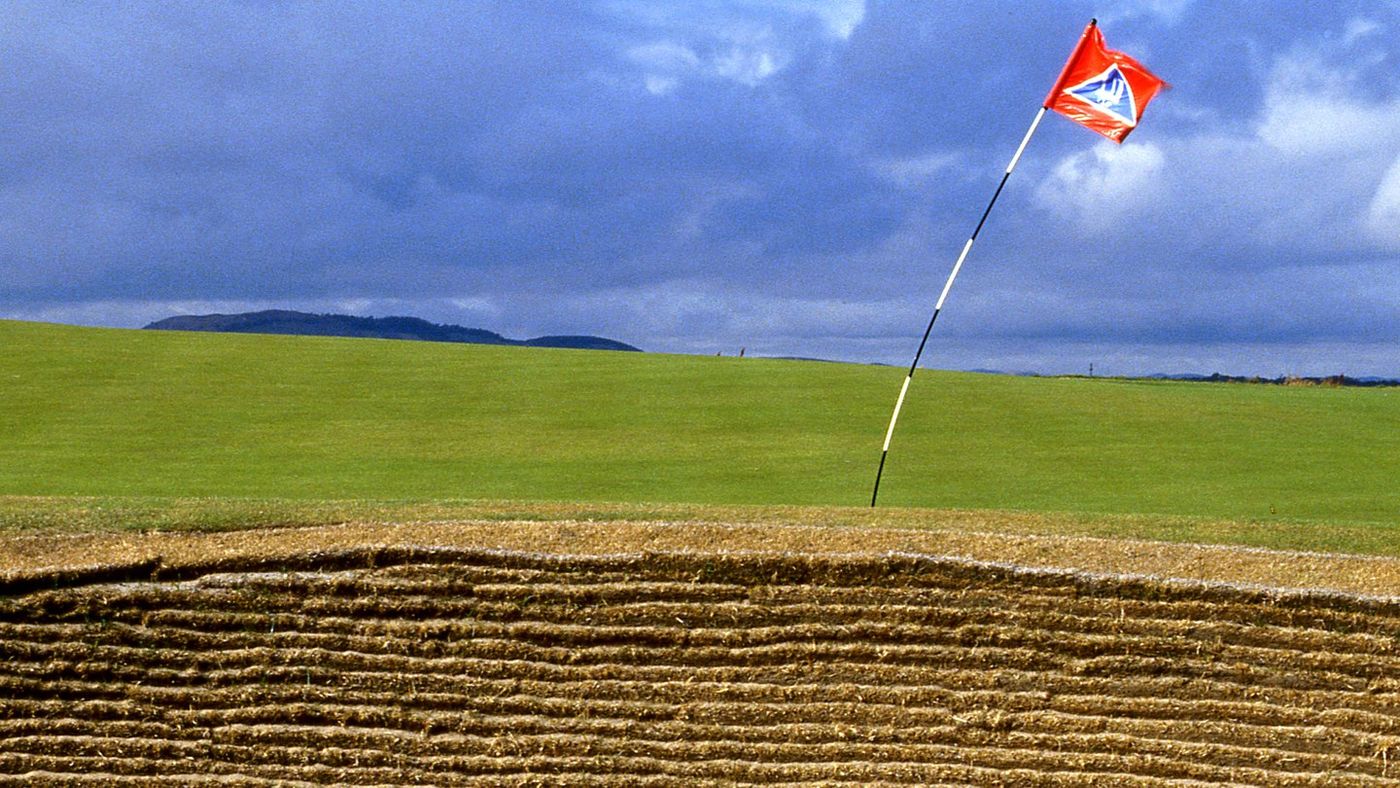 Kampf mit den Elementen: Das 11. Loch ist mit seinen 178 Yards keine lange Bahn. Aber der Blick auf die Fahne zeigt, woher der Wind weht. Von der Mündung des Eden River bläst eine steife Brise auf diese exponierte Spielbahn und lässt die Bälle gerne im "Strath Bunker" verschwinden.