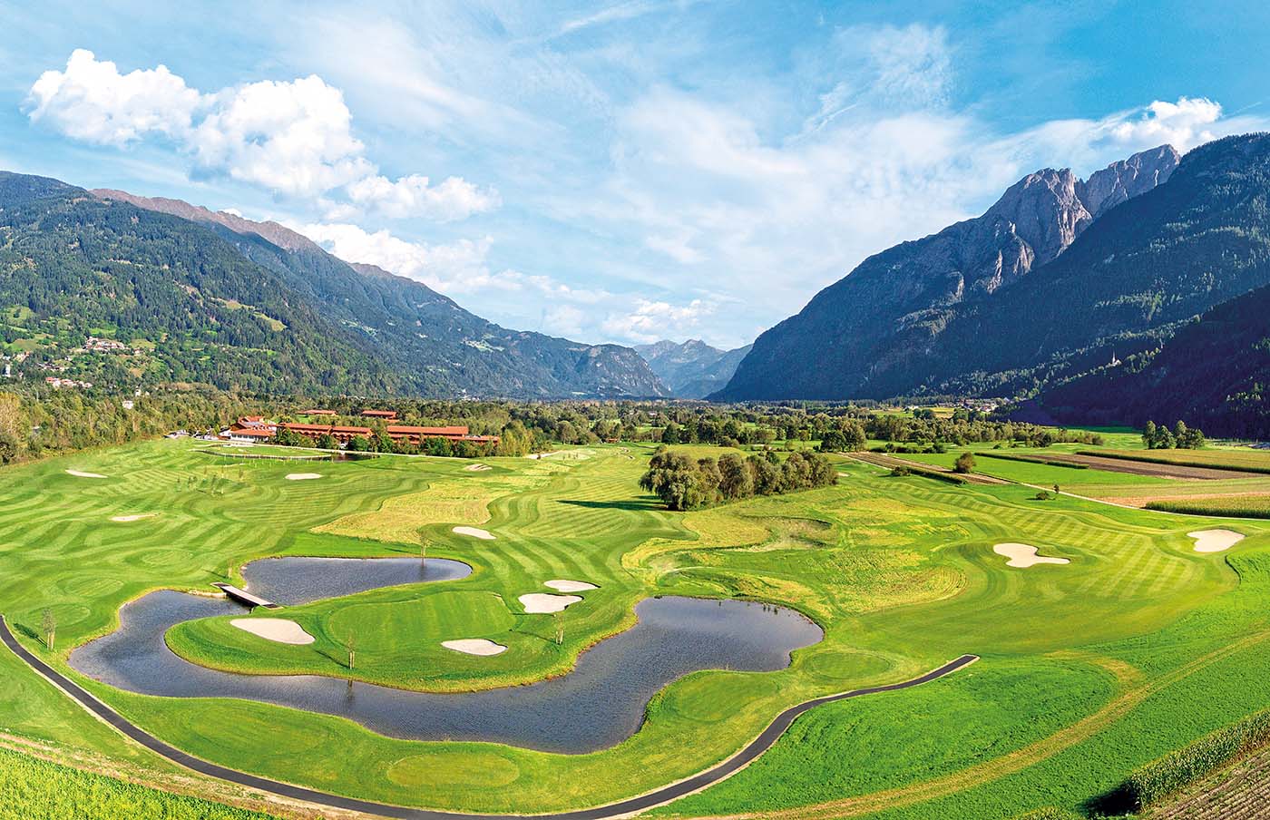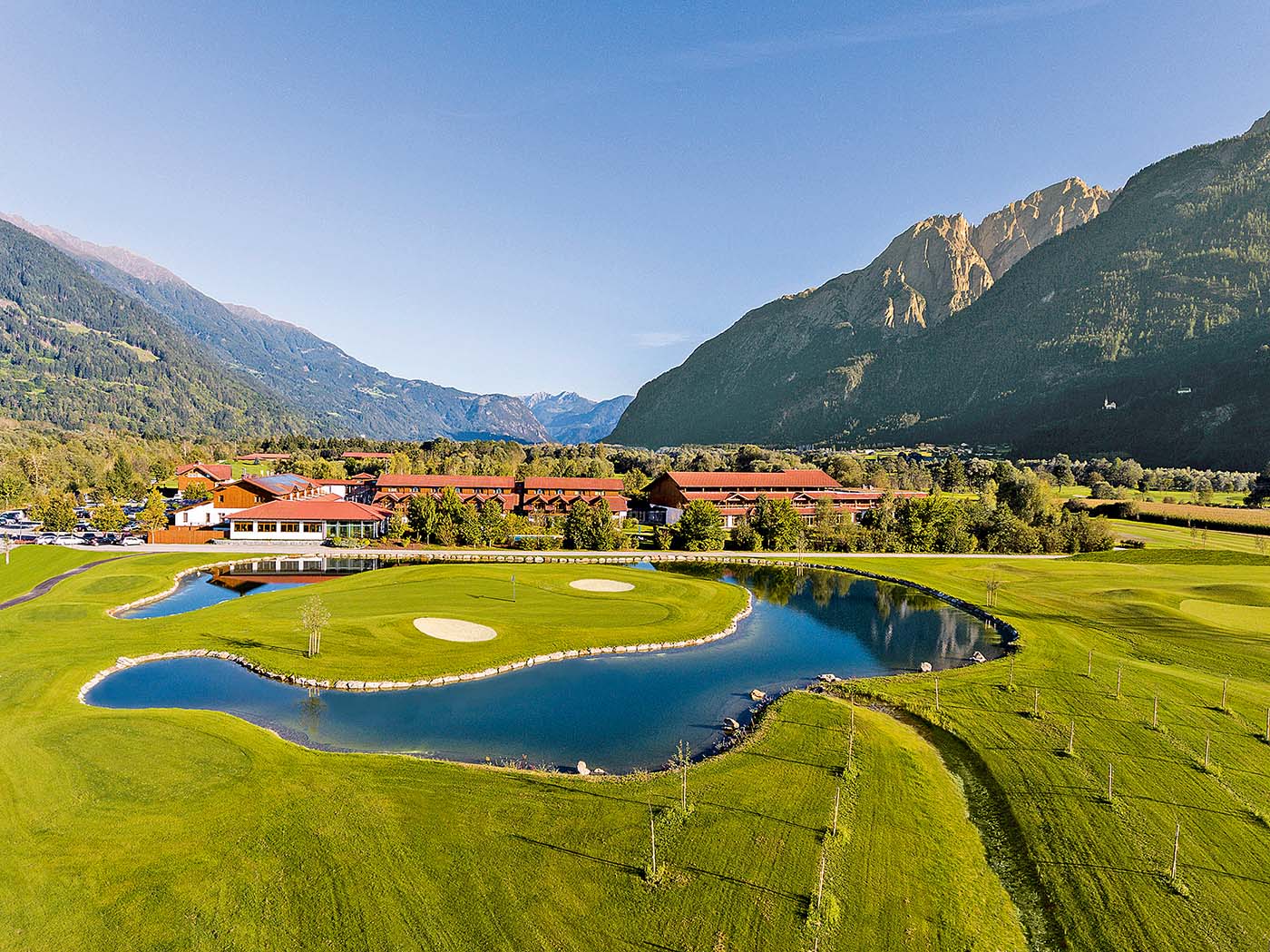 Das Dolomitengolf Resort verwöhnt mit Golf und Genuss vor atemberaubender Alpenkulisse. Kein Wunder daher, dass die eben gelegene Golf-Oase nahe der Sonnenstadt Lienz in Osttirol zu den Seriensiegern dieser Leserwahl zählt. Denn hier, im breiten Drautal auf 600 Metern Seehöhe auf der Alpensüdseite, bleiben keine Golfurlauberwünsche offen: Die größte Meisterschaftsanlage Tirols bietet zwei verschiedene 18-Löcher-Plätze, das Dolomitengolf Hotel & Spa liegt direkt am ersten Abschlag, die Dolomitengolf Suites nur eine Par-5-Länge vom Clubhaus entfernt. Und nach der Runde locken u.a. ein luxuriöses Spa mit über 1.500 qm und Fitnesscenter sowie das mit zwei Gault-Millau-Hauben prämierte Gourmet-Restaurant Vincena.