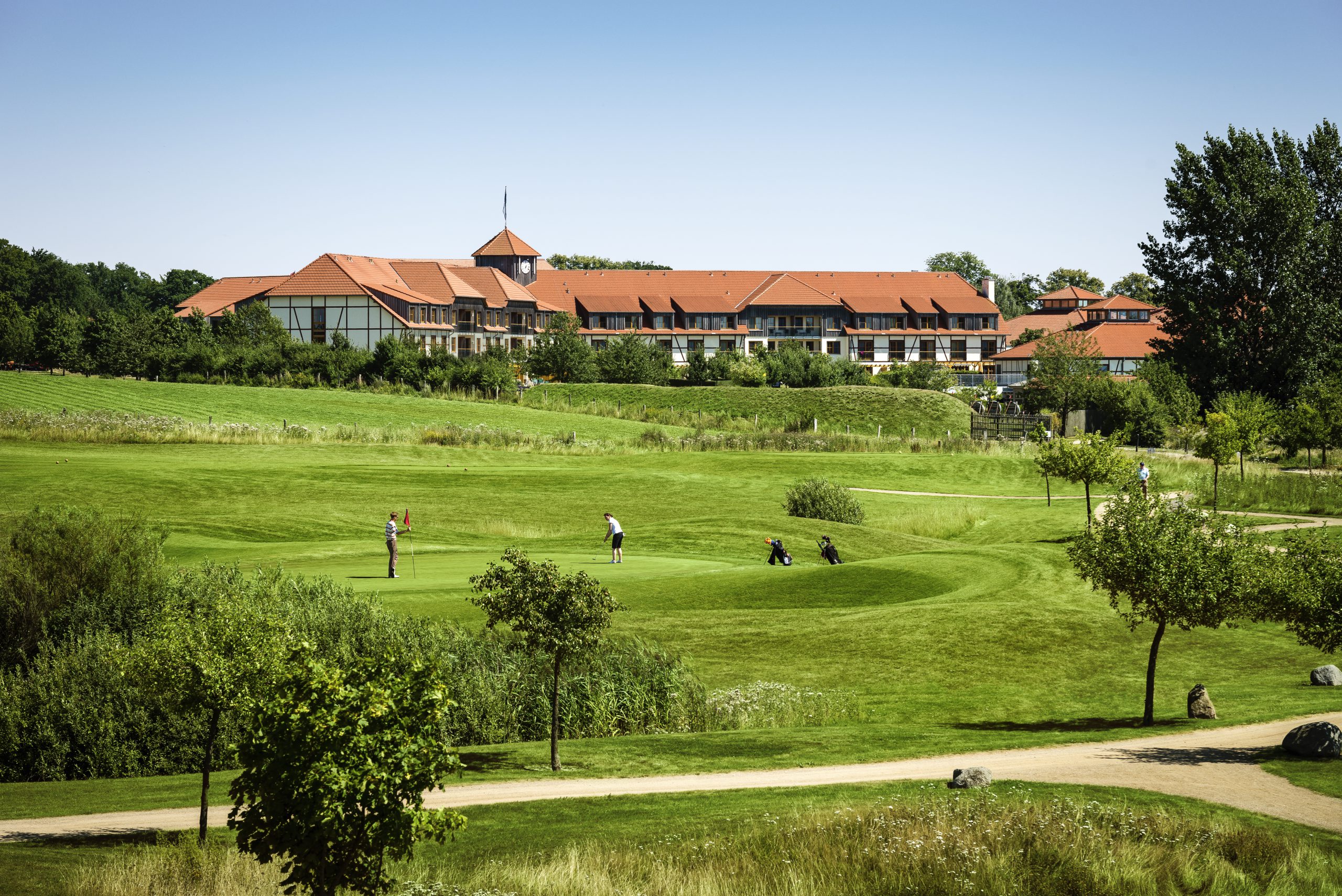 Mitten in der idyllischen Natur der Mecklenburger Seenplatte liegt der Robinson Club Fleesensee. Hier befindet sich zudem das Golf-Eldorado Fleesensee, das keine Wünsche offenlässt. Die fünf Plätze mit insgesamt 72 Spielbahnen beeindrucken mit ihrem teils leicht hügeligen Gelände und den unterschiedlichsten Schwierigkeitsgraden. Und auch die ansässige Golf-Akademie bietet für jede Spielstärke etwas. Aber nicht nur Golf wird in Deutschlands einzigem Robinson Club großgeschrieben, der im Dezember 2019 umfangreich renoviert wurde. Die Seenplatte und das vielfältige Sportangebot – wie beispielsweise Wassersport, Bogenschießen, GroupFitness oder Beach-Volleyball – bieten zahlreiche Alternativen. Zur Entspannung laden das WellFit-Spa sowie das umfangreiche kulinarische Angebot ein. Im Gewinn-Package stecken 2 Ü/VP im Robinson Club Fleesensee, inkl. Greenfee für zwei Tage auf allen drei 18-Löcher-Plätzen. Gesamtwert: rund 1.000 Euro (gültig bis 31.5.2022).