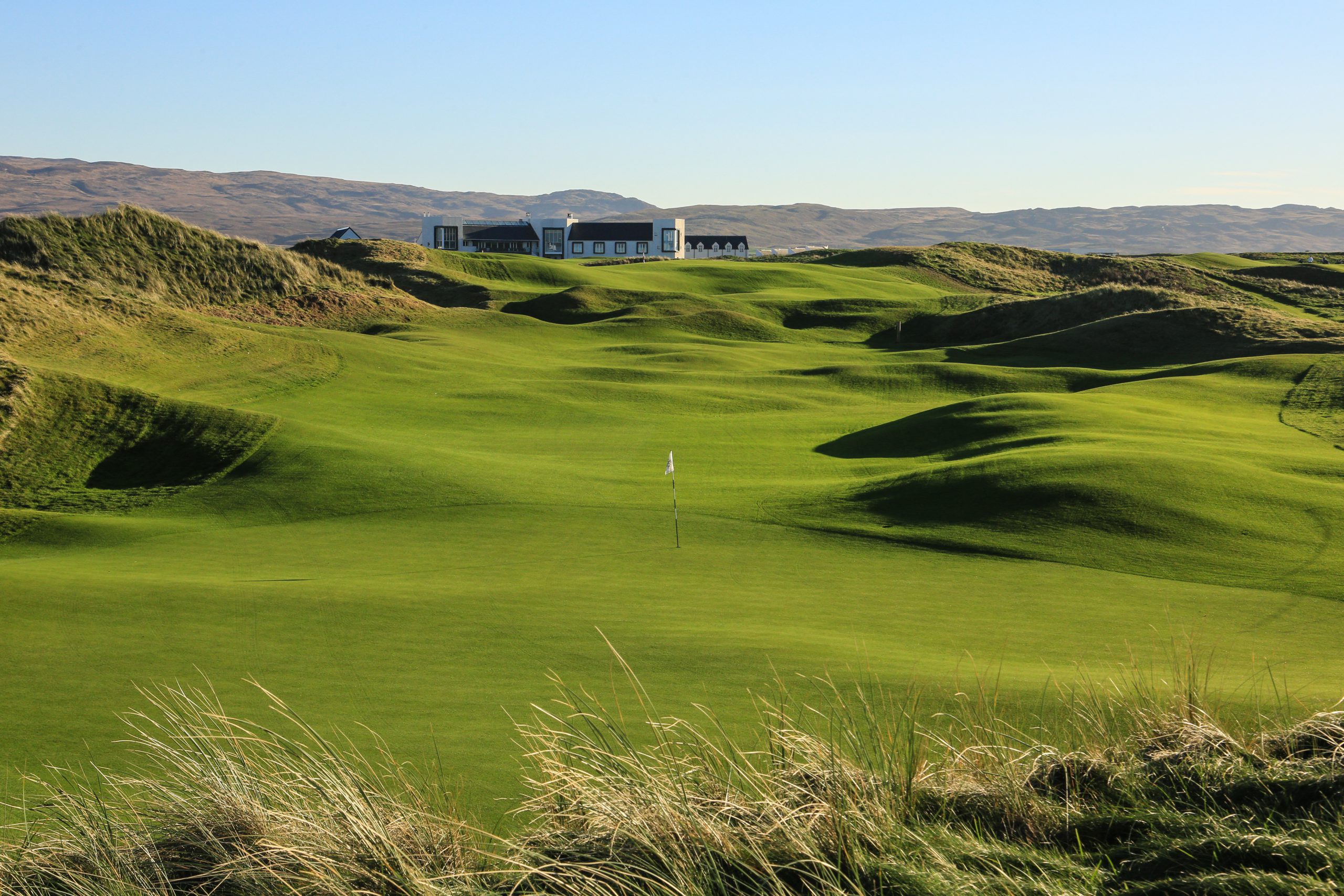 In spektakulärer Lage – mitten in den Dünen der für ihre vielen Whisky-Destillerien bekannten Insel Islay vor der schottischen Westküste – liegt The Machrie Hotel & Golf Links direkt an einem sieben Meilen langen Sandstrand. Das erst im Sommer 2018 nach Komplettrenovierung wiedereröffnete und seither mehrfach preisgekrönte Hotel besitzt nur 47 Zimmer, Suiten und Lodges. Das Restaurant mit Glasdach und Terrasse bietet einen atemberaubenden Blick über das Meer und den Golfplatz. The Machrie Links wurde 1891 von Willie Campbell entworfen und vor Kurzem von D. J. Russell modernisiert.