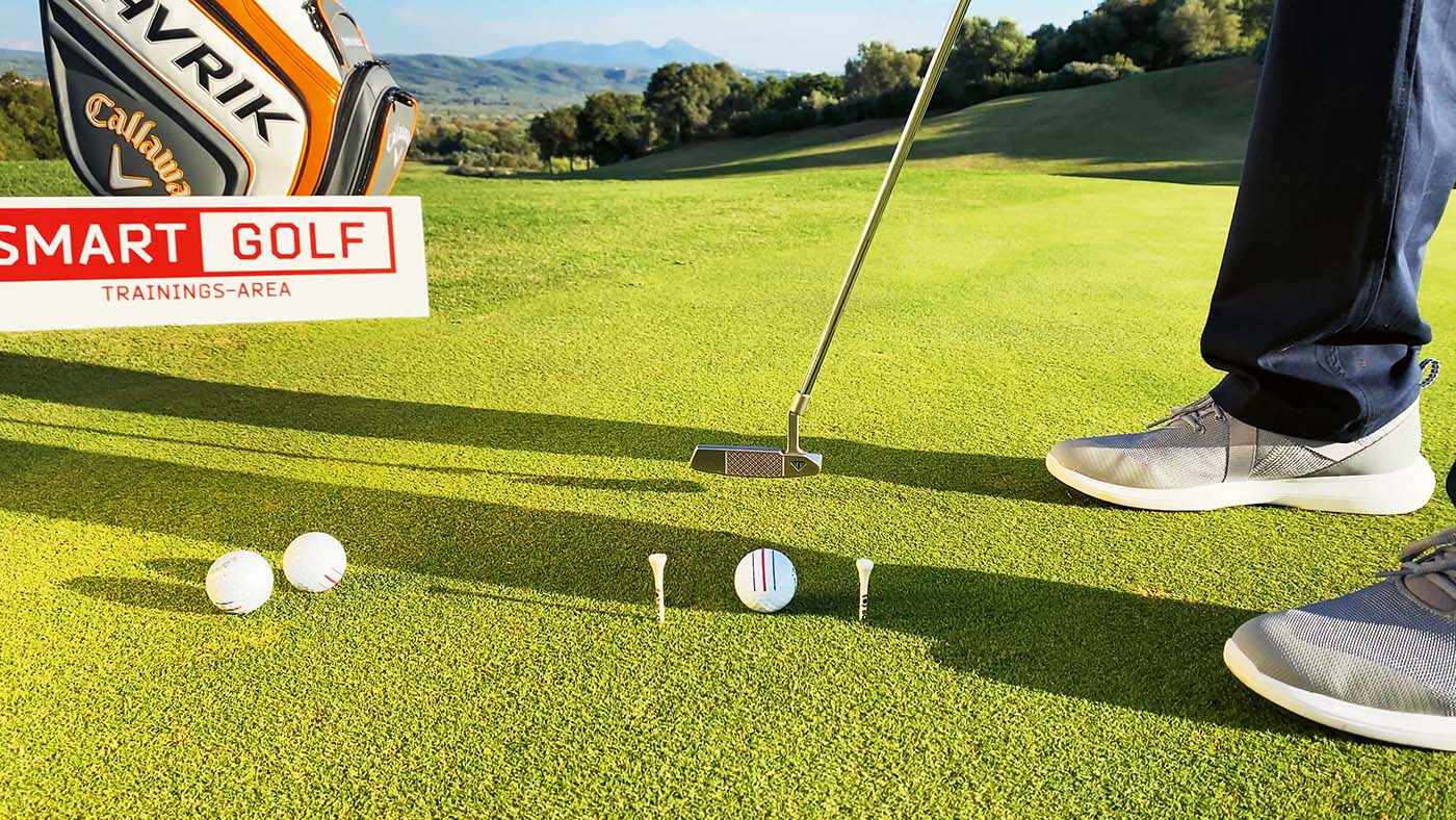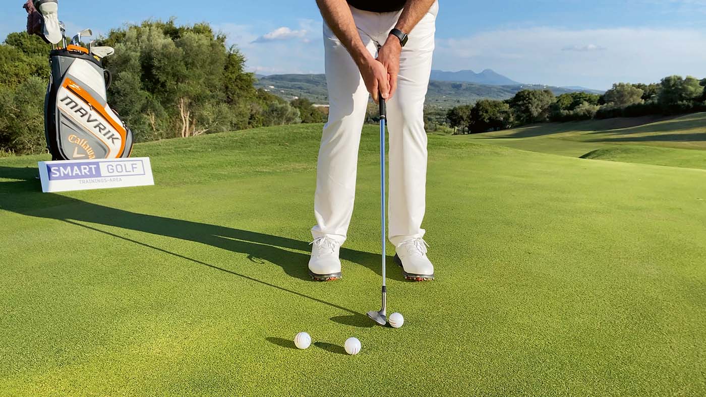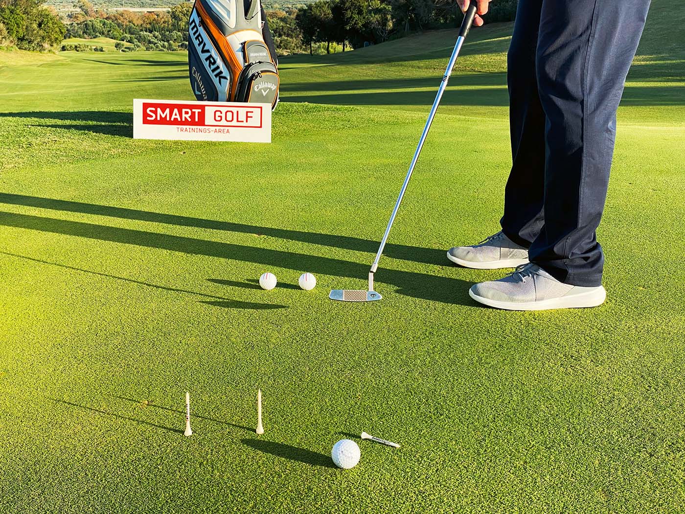 Diese Variante lässt sich problemlos daheim auf der Putting-Matte üben. Wer weiterhin draußen auf dem Putting-Grün spielen kann, sollte diesen Drill auch über längere Distanzen üben. 15 Meter entfernt – und dann den Zielkorridor fünf Meter lang machen. Wer es richtig schwer möchte, kann das Ganze noch bergauf und bergab spielen.