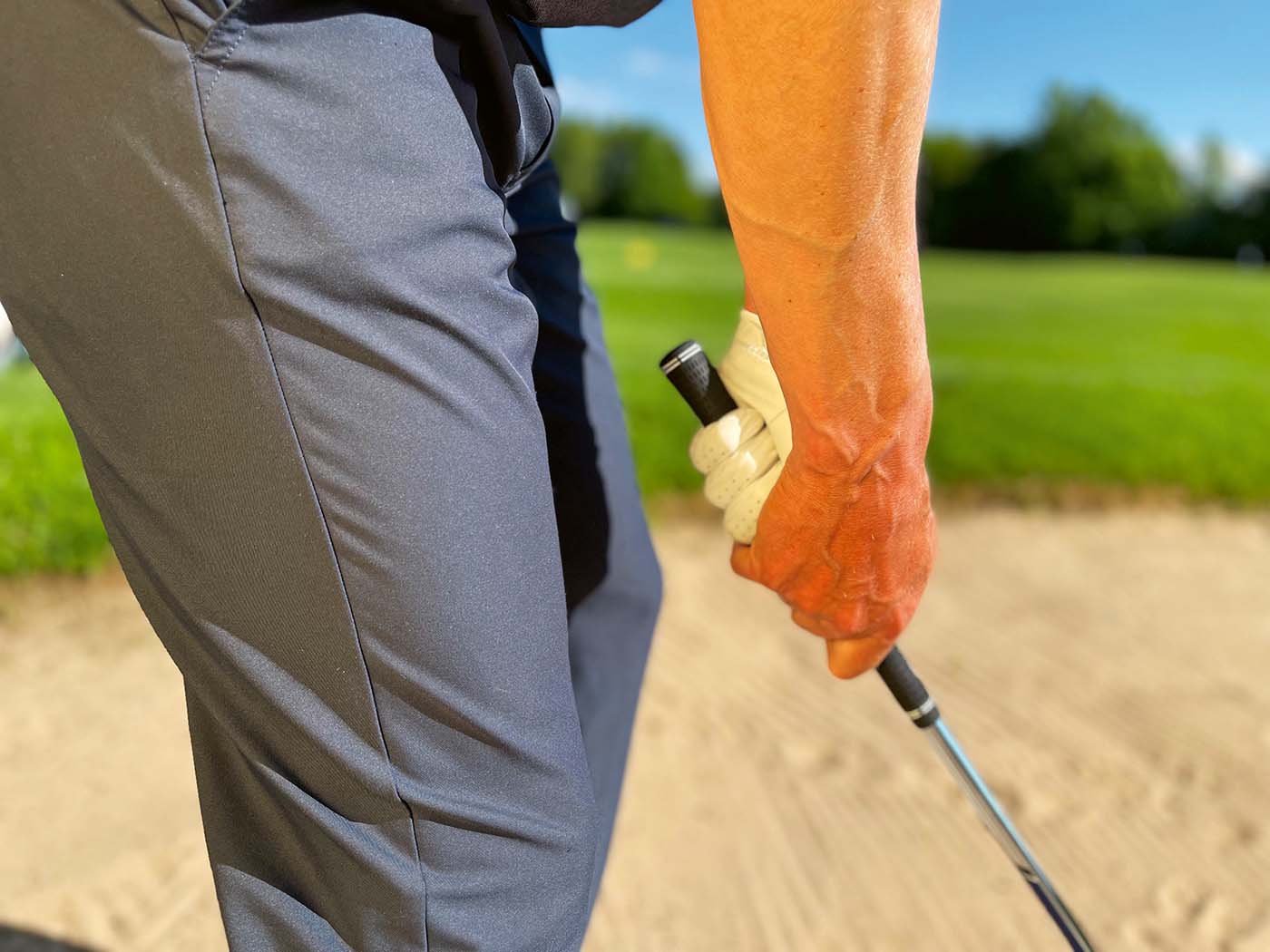 Falsch: Mit einem Sand-Eisen in solchen Lagen fliegt der Ball steil nach oben – zu steil. Der Ball erreicht große Höhen aber überwindet dabei keine weiten Strecken.