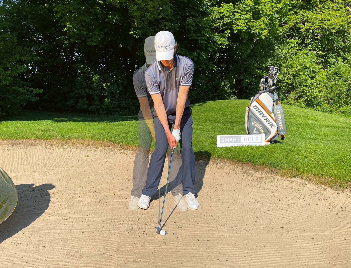 Set-up: Auch wenn der Ball weiter fliegen soll – es bleibt ein Bunkerschlag! Beziehen Sie Ihre Standposition wie bei einem normalen Bunkerschlag.