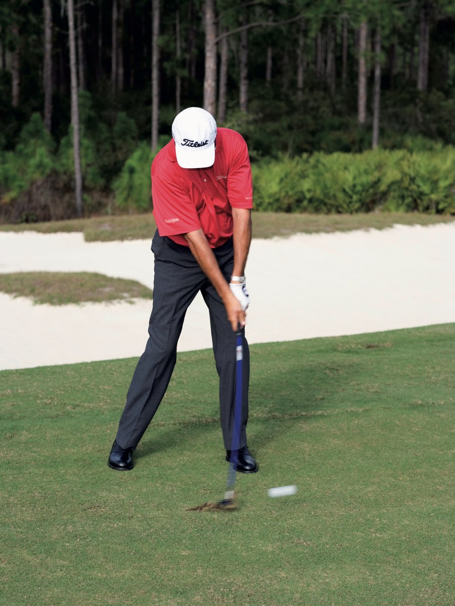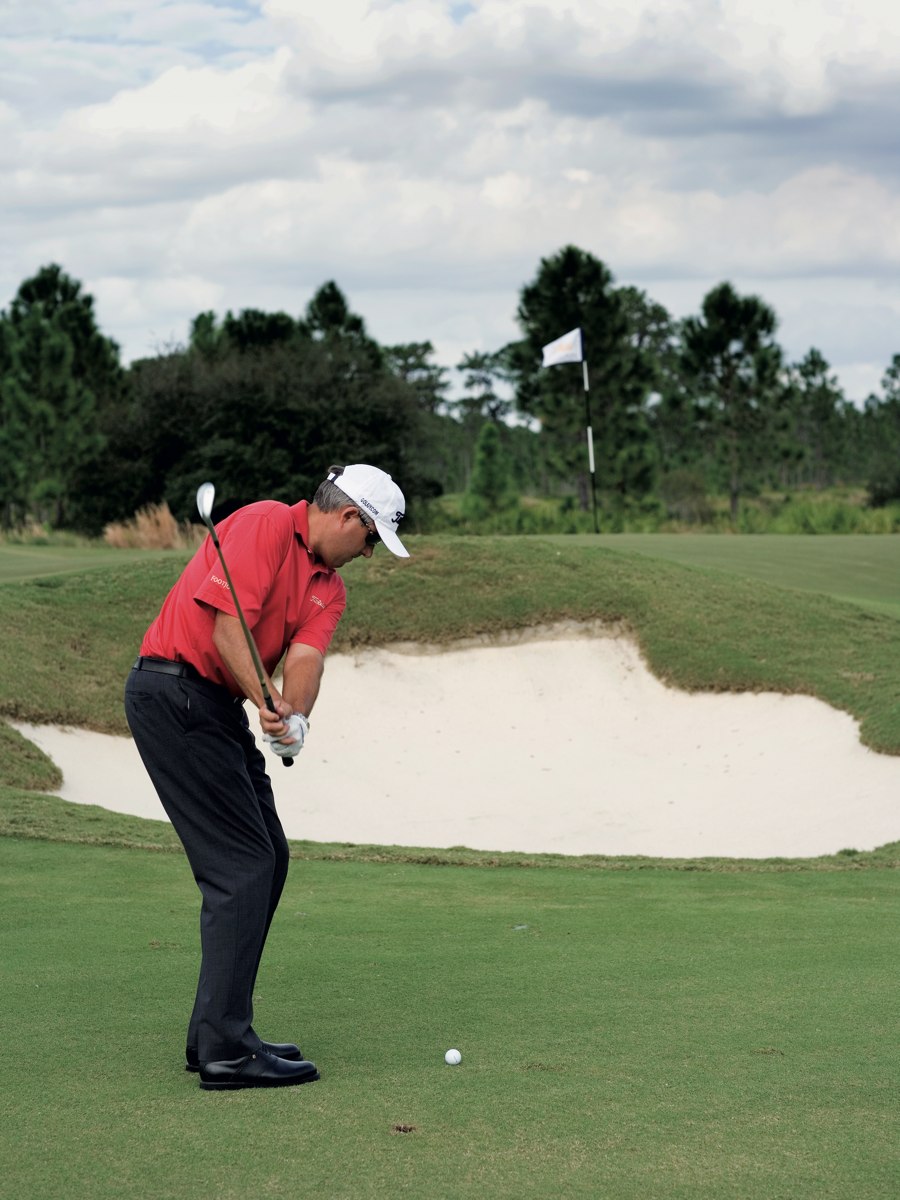 Gar keine Frage, hier handelt es sich um einen wirklich nicht leicht auszuführenden Schlag. Wer ihn wirklich beherrschen will, muss viel trainieren. Zwei Varianten bieten sich an. Erstens wie einen Bunkerschlag, oder zweitens wie einen Chip