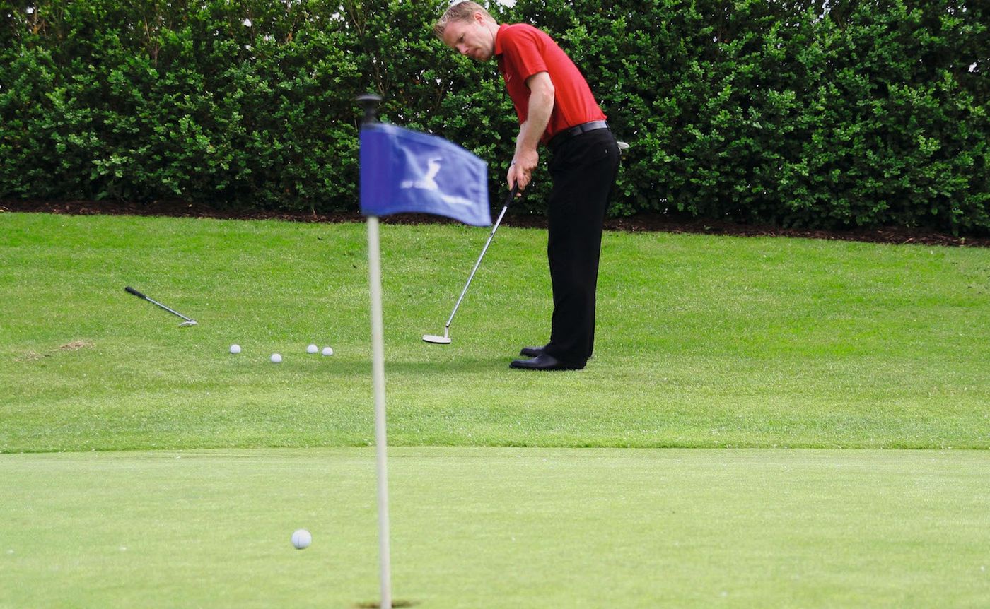 Die meisten von uns würden mit einem eher flachen Wurf und viel Rollweg des Balls dafür sorgen, dass Sie eine kleine Bewegung machen können und somit das Risiko minimieren. Übertragen Sie das auf Ihr kurzes Spiel – und schon haben Sie ohne exzessives Training viel gewonnen! Trotzdem kommen Sie nicht ums Üben herum, da Sie sich an ungewohnte Schläge und (bisher) nicht vertraute Golfschläger im kurzen Spiel gewöhnen müssen.